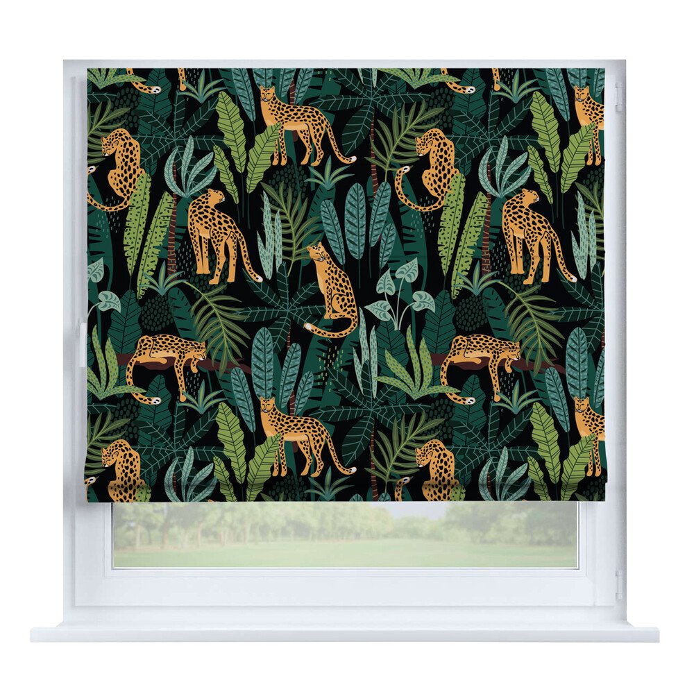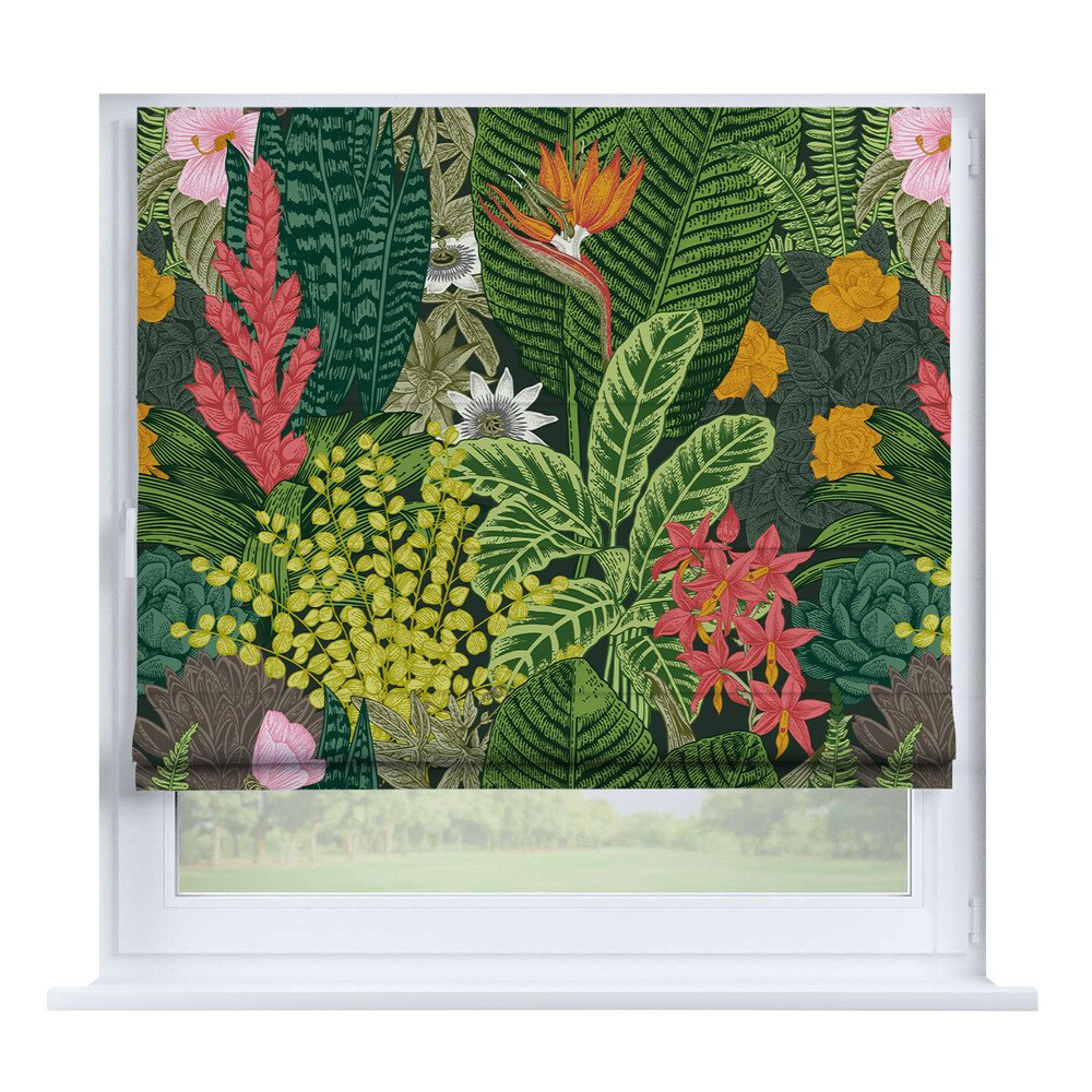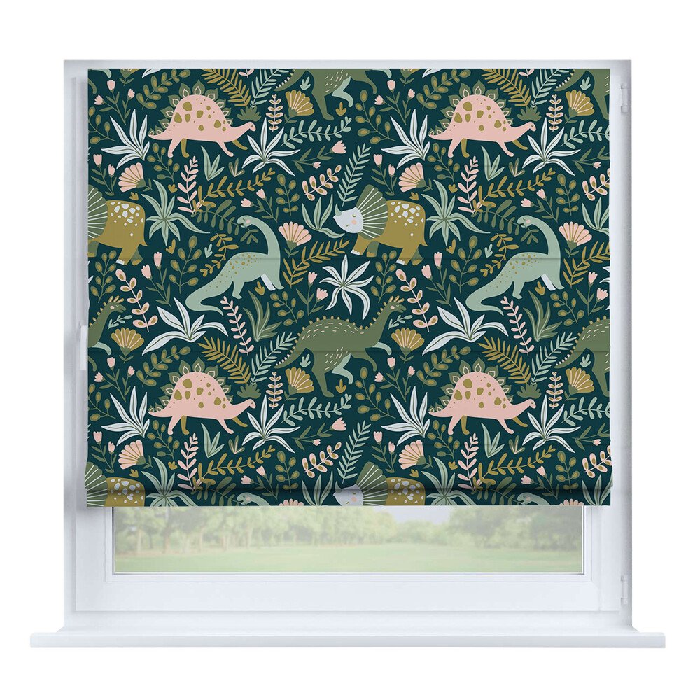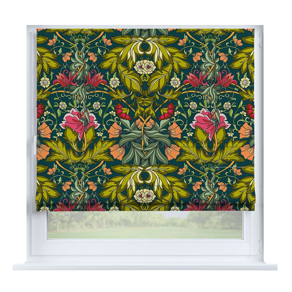 Римская штора для проёма лён димаут тёмно-зелёный, карниз верёвочный