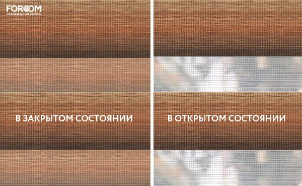 Виды рулонных штор «день-ночь»